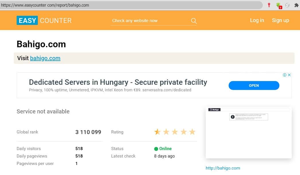 Анализ посещаемости портала аферистов Bahigo по сведениям сервиса easycounter