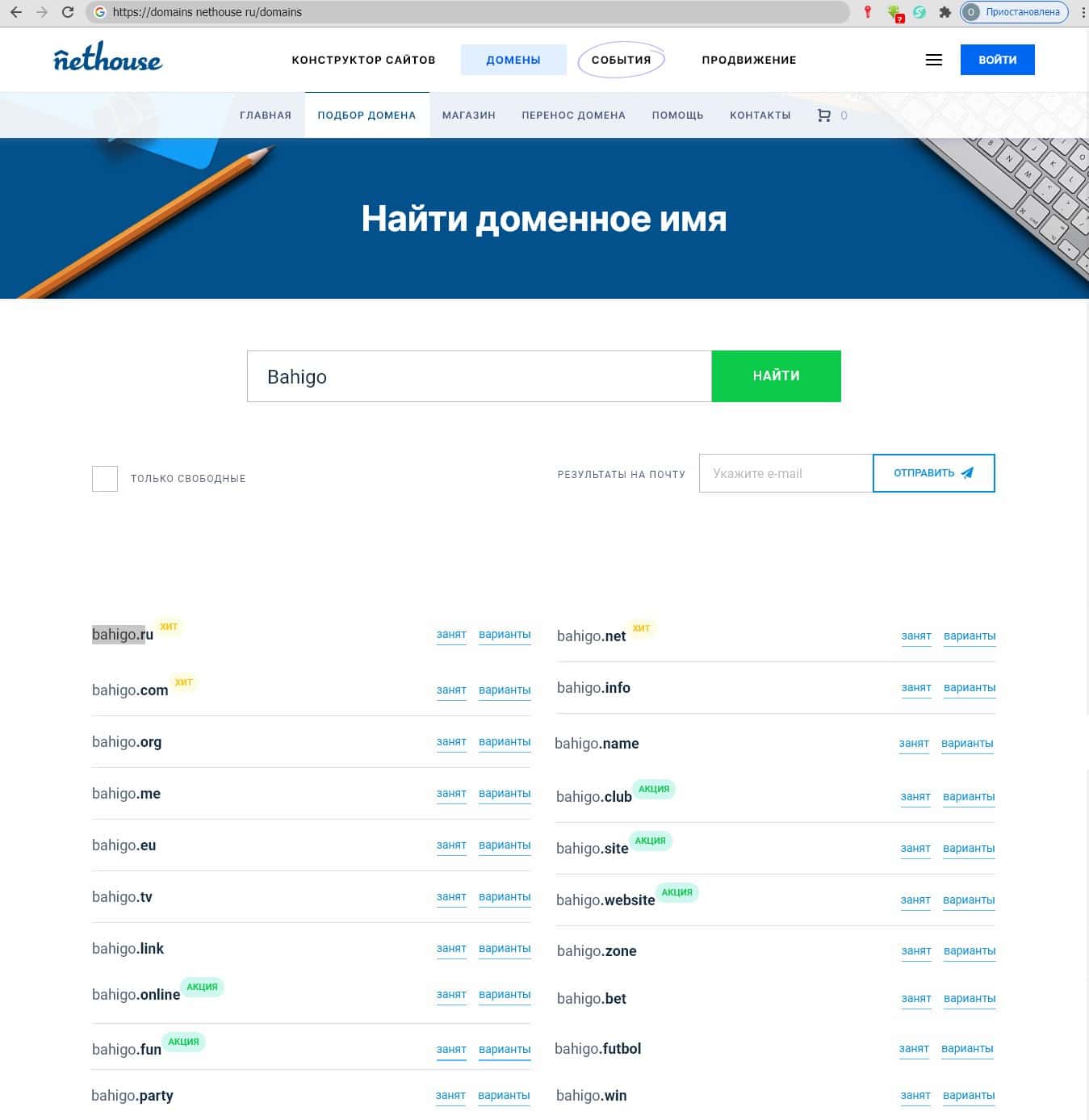 domains nethouse ru - наличие зарегистрированных и свободных доменных имен по бренду