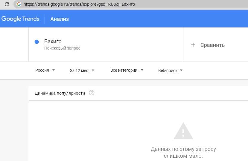 - Аналитика количественных показателей запросов о конторе Bahigo в системе Google
