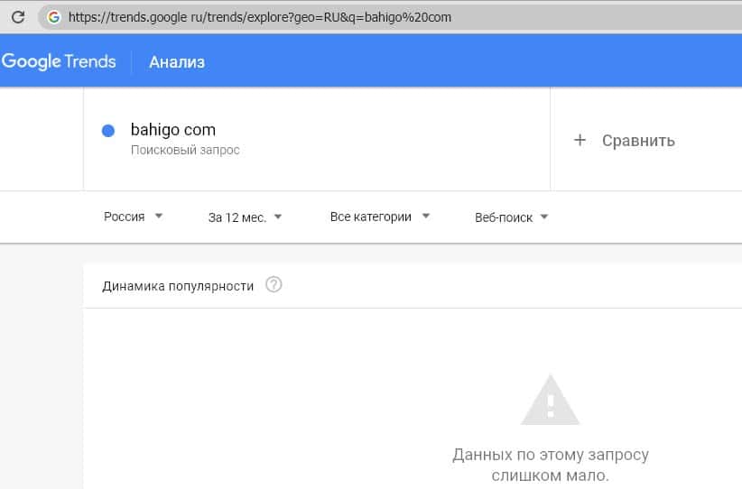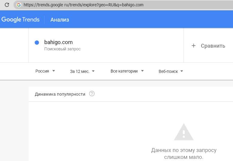 Оценка поисковых запросов портала мошенников "bahigo com" так же не может быть проанализирована, так как и эти запросы находятся в мизерном количестве.