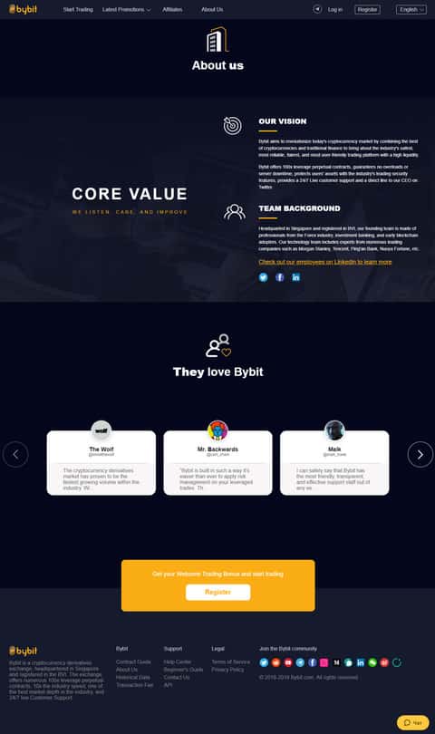 Третья часть сайта шулерской конторы Бай Бит, рассказывает именно об это лохотроне и как обычно не без липовых отзывов. Контора использует эффект массовки, чтобы лохи подумали, что здесь реально много клиентов, которые отзываются хорошо о кухне ByBit.