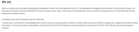 Бай Бит - очередная шулерская контора, которая занимается облапошиванием наивных клиентов, путем предоставления торговли на криптовалютном рынке. Кухня работает как биржа, но не смотря на все привилегии криптовалюты, это есть рисковая деятельность, и вы можете потерять все, тем более что вам помогут жулики из ByBit.