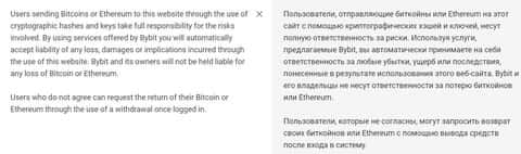 На сайте конторы Бай Бит в большей мере представлен не сам договор, а клиентское соглашение на использования их интернет-ресурса. Кухня использует те же самые отмазки, что и форекс-мошенники, поэтому у себя в документе и прописали, что пользователи несут полную ответственность за убытки, которые они понесут через этот сайт.
