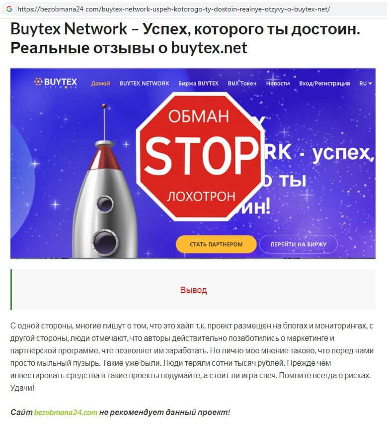 - BuytEx - обзоры мошенников на других интернет-ресурсах