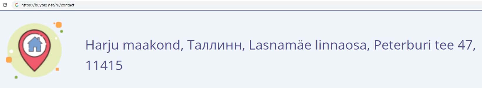 Жулики BUYTEX конкретного юридического лица с формой собственности не указывают, а вместо этого указали часть домена своего сайта.