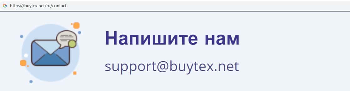 Лохотронщики BuytEx на своем официальном интернет-ресурсе указывают адрес электронной почты, а именно: