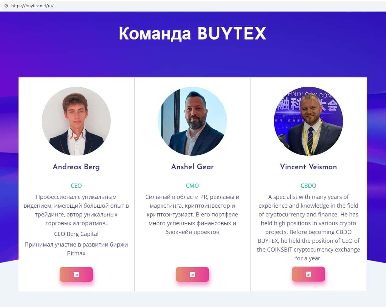 Аферисты BuytEx предоставляют вероятно фальшивую информация о руководстве, но точно знать о том, кто руководит скам-проектом мы не можем.