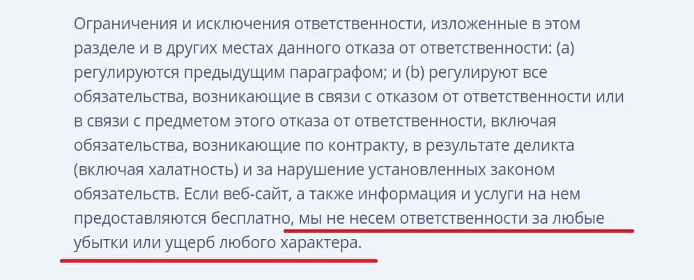 Согласно тому, что аферисты пишут в соглашении, скам-компания Байтес не несет никакой ответственности за не полученную прибыль клиентом, а так же за возможные убытки.