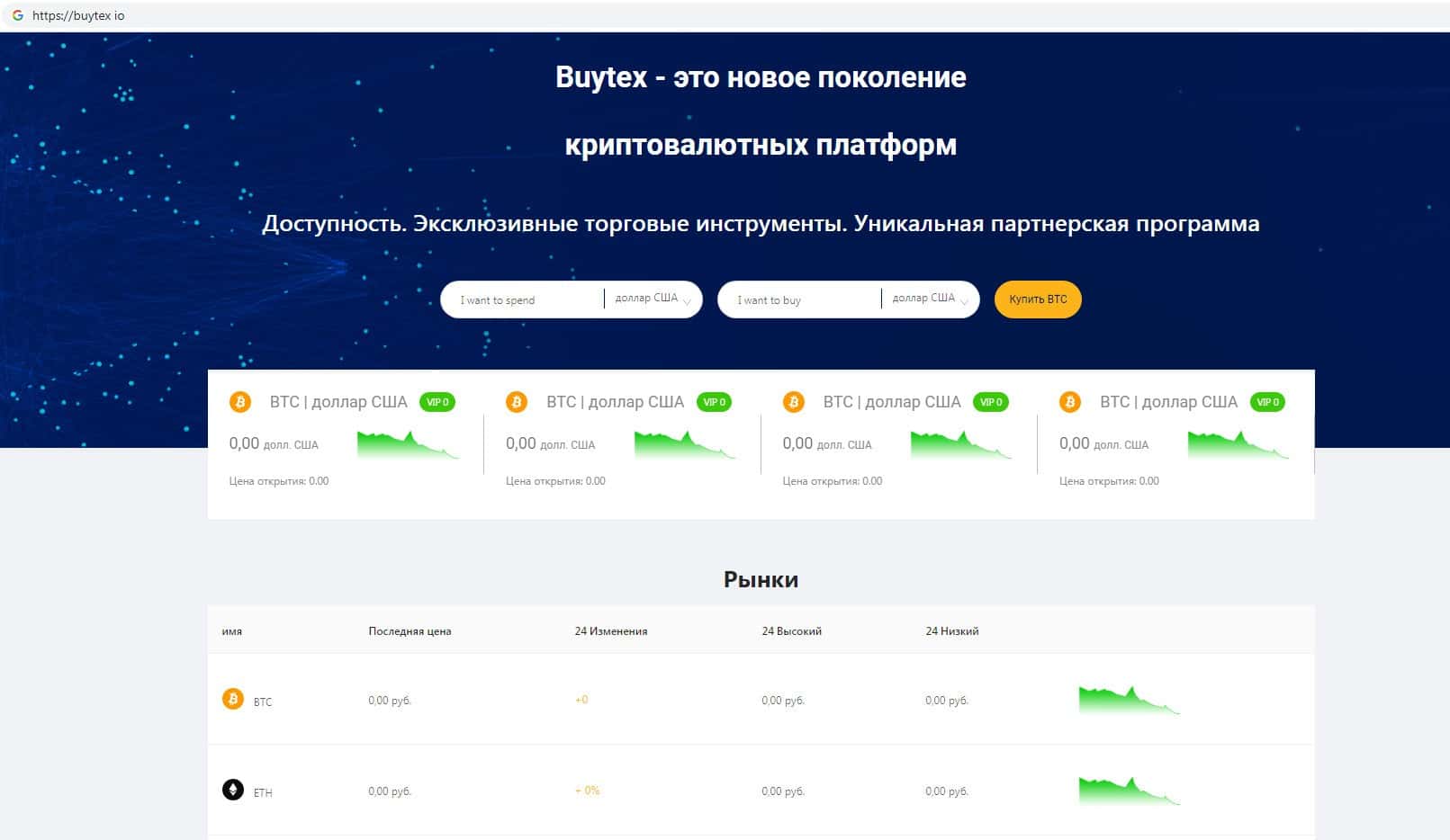 Обзор главной страницы криптовалютного лохотрона BuytEx