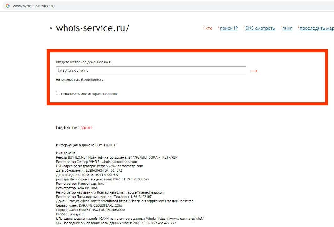 - Информация о домене онлайн-ресурса аферистов Buytex Network
