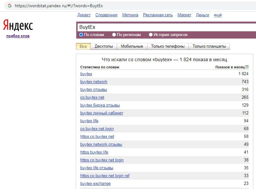 Данный интернет-лохотрон под названием "BuytEx" скорее всего пользуется популярностью в поисковике Яндекс из-за рекламы в интернете.