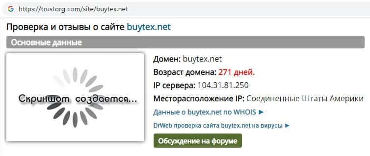 Проверка интернет-сервиса аферистов BuytEx на trustorg com показала, что возраст домена к моменту написания статьи составляет 271 день, скорее всего домен купленный.