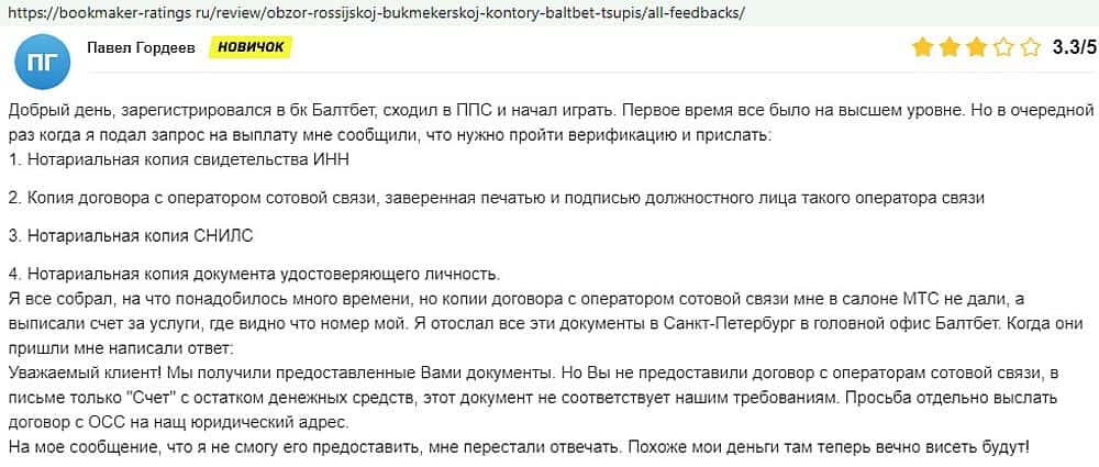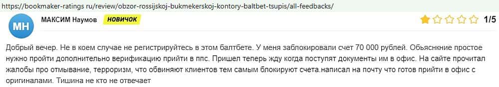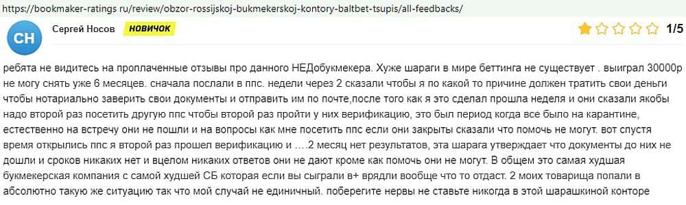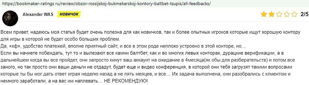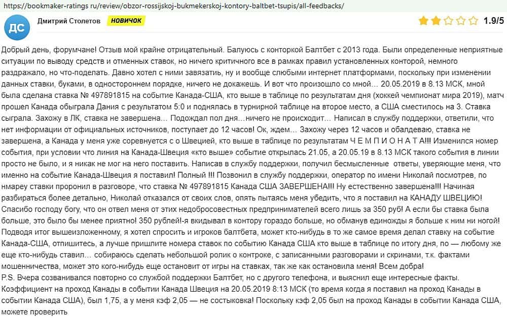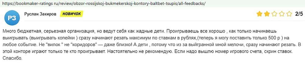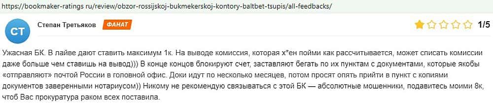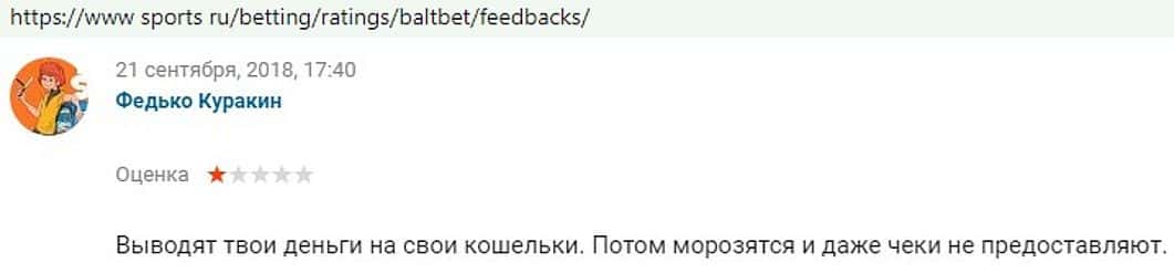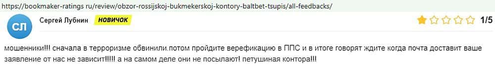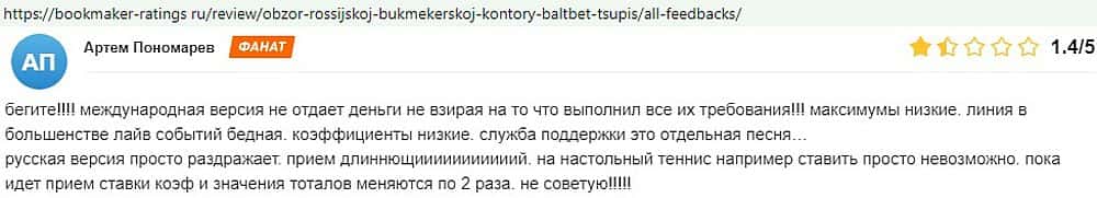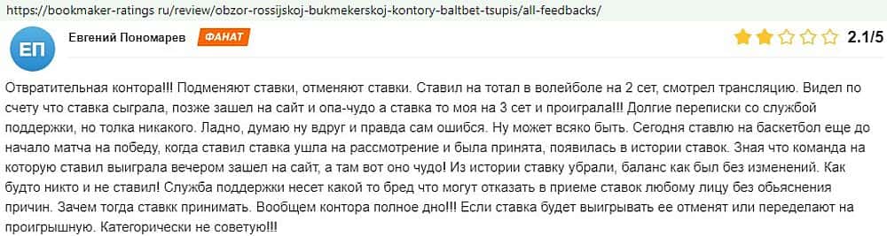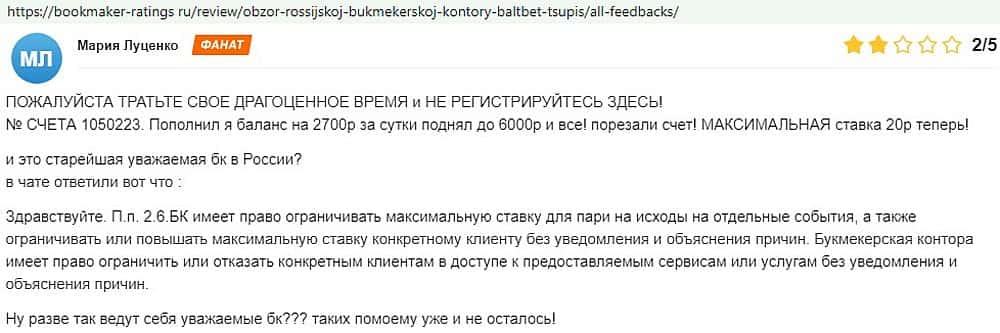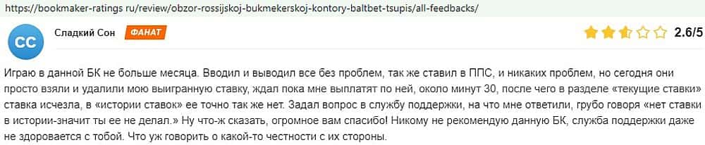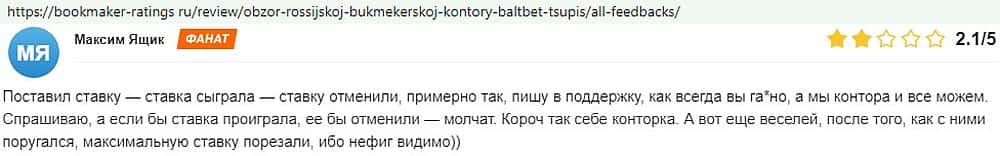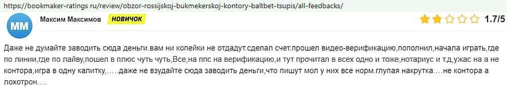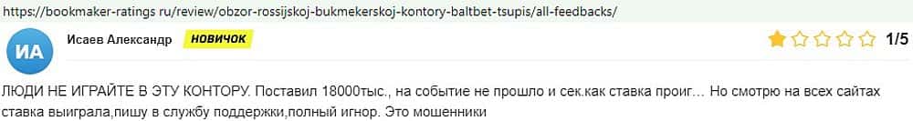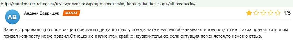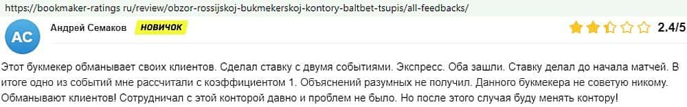 Никак не прощают пользователи мошенничество Балт Бет. Еще один их клиент пожаловался пользователям портала букмекер-рейтингс ру на это откровенное жульничество.