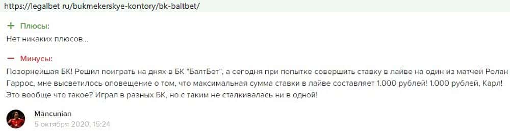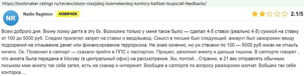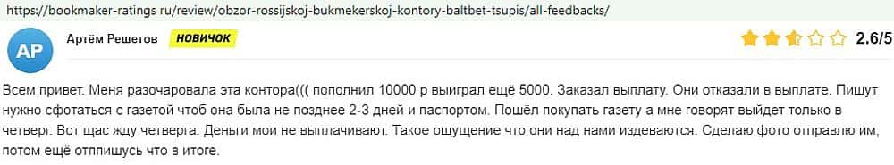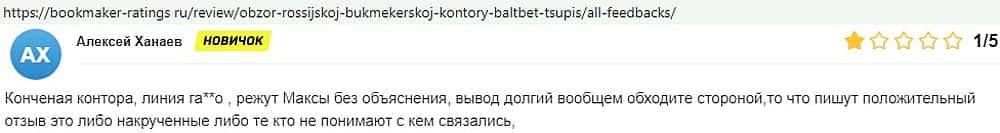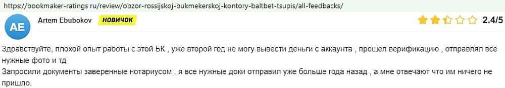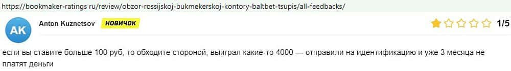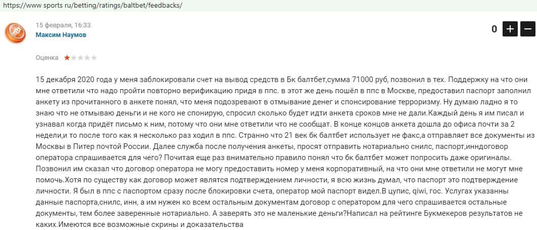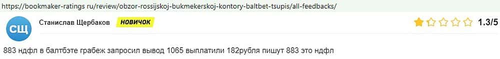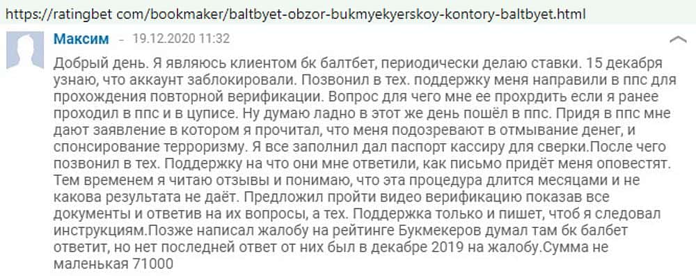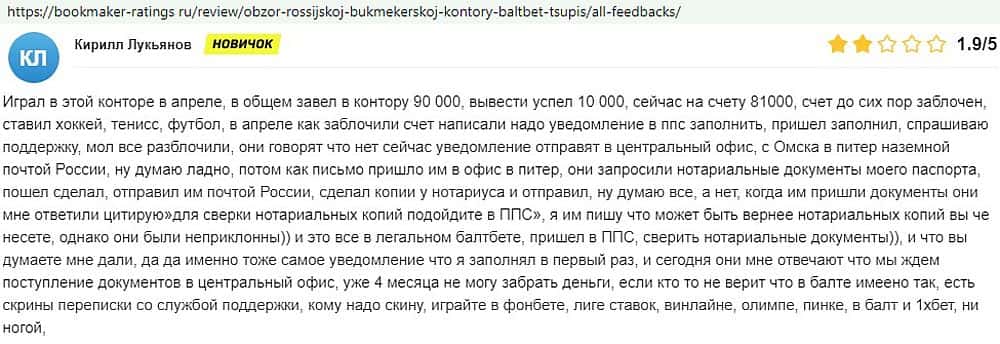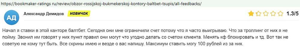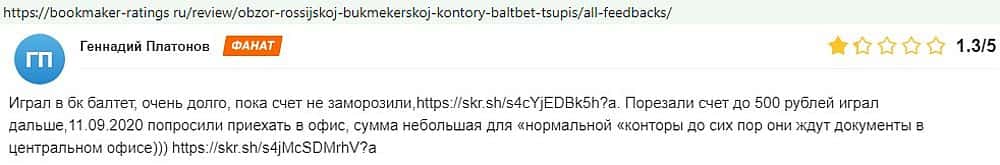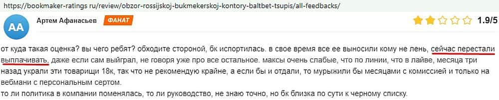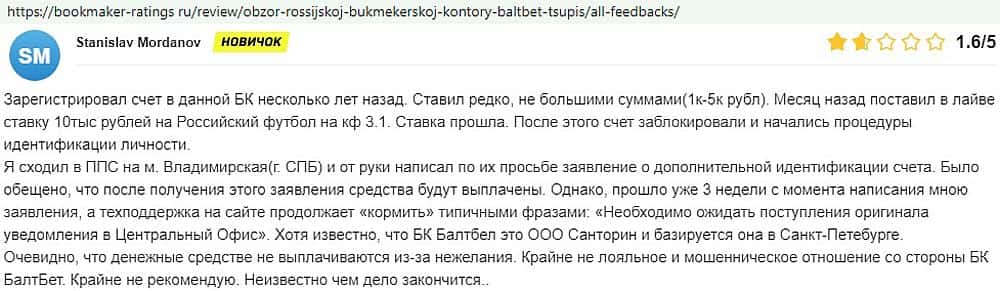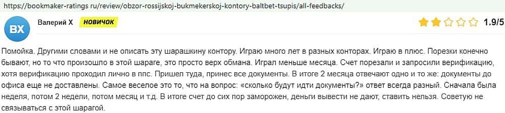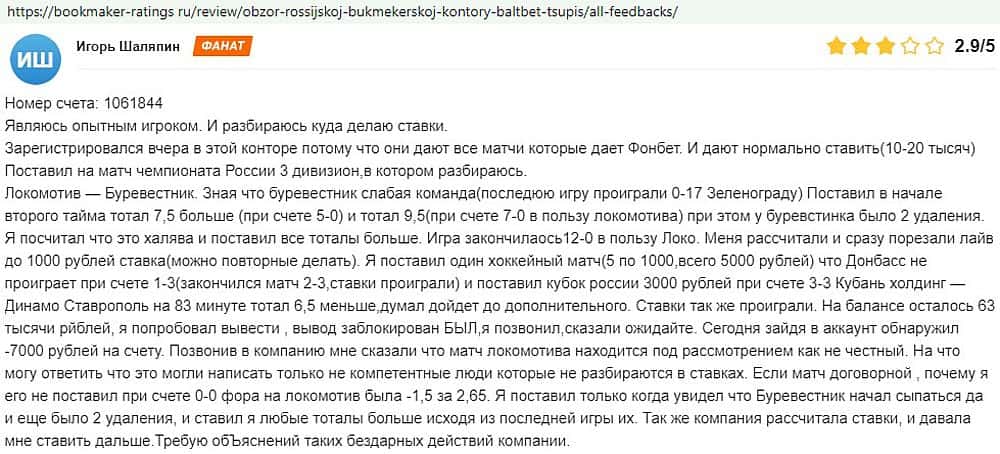 Никак не прощают пользователи мошенничество Балт Бет. Еще один их клиент пожаловался пользователям портала букмекер-рейтингс ру на это откровенное жульничество.