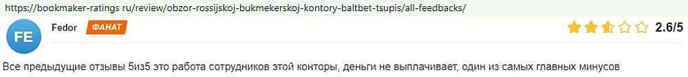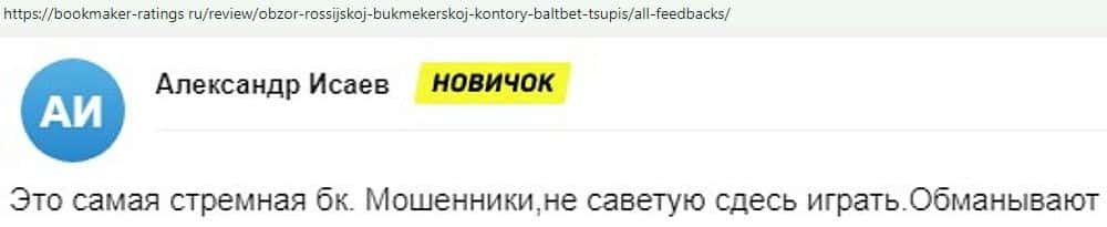 Даже те игроманы, которые уже давно орудуют в сфере ставок на спорт, не советуют иметь дел с аферистами BaltBet Ru, поскольку те, неоднократно обворовывали своих пользователей.