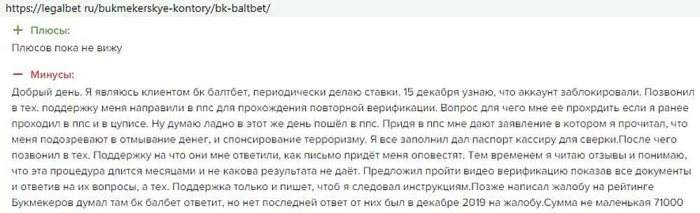 А теперь вот 71000 еще не может вывести клиент шарлатанства BaltBet Ru. Его тоже напрягли сложной процедурой псевдопроверки, но только вот выплаты он так и не дождется.