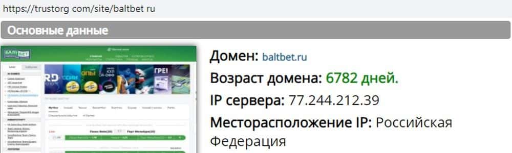 Онлайн-ресурс трасторг ком показывает, что сайт кидал BaltBet Ru существует давно. Но это не повод им доверять - мошенники просто перекупили возрастной домен, для солидности.