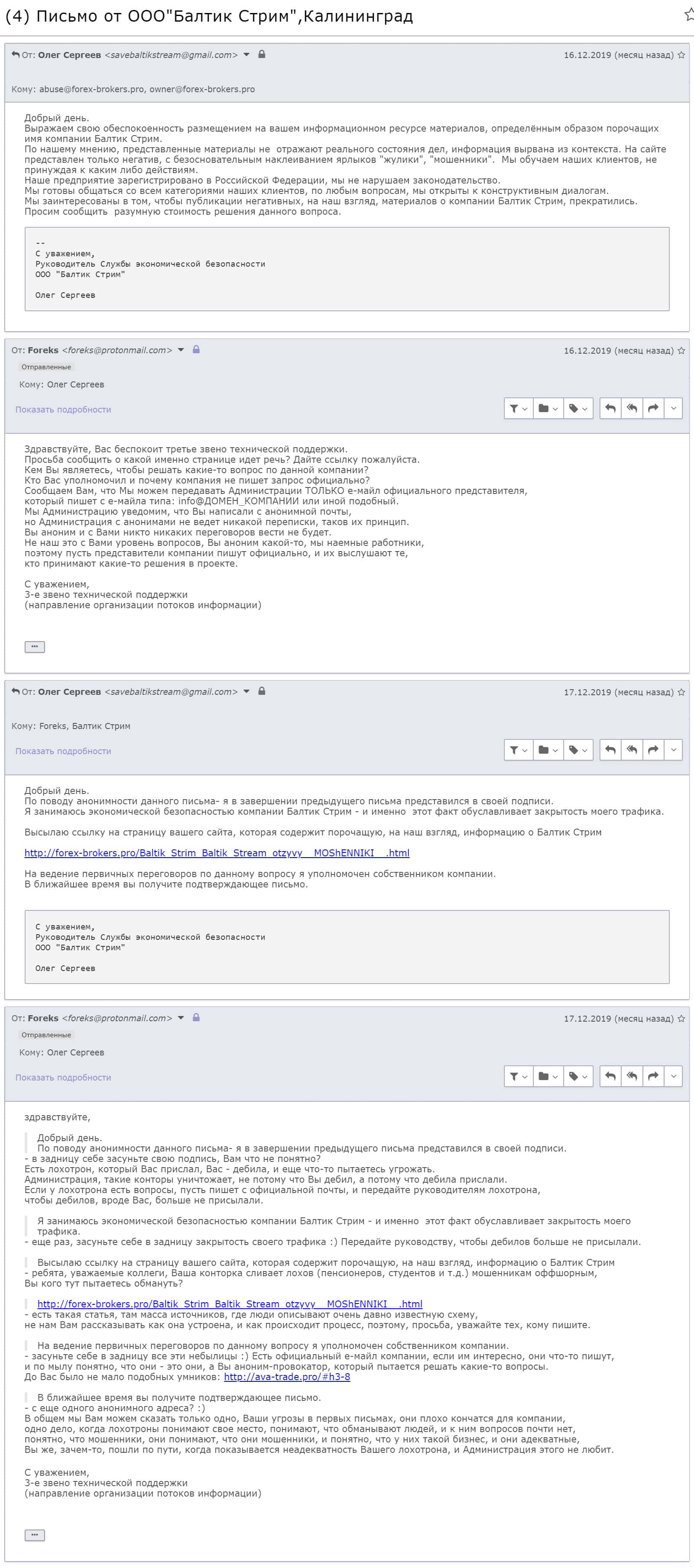 Ниже приводим письмо от официального представителя ООО Балтик Стрим, который пишет с левой почты - [email protected] и рассказывает о своих нуждах убрать эту статью, потому как она, видите ли является неправдой, написана тут клевета и всякое такое. Переписку публикуем ниже.
