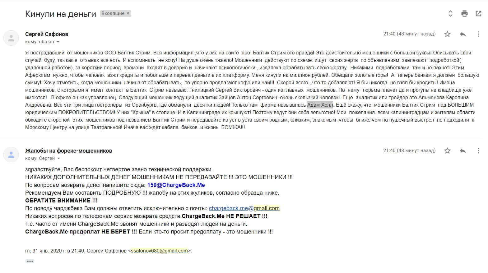 - Отзыв о кидалове со стороны мошенников Baltik Stream