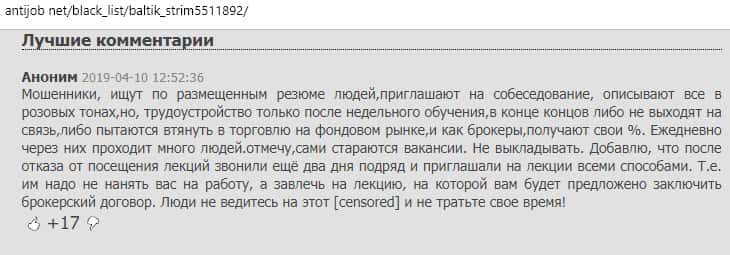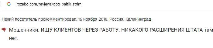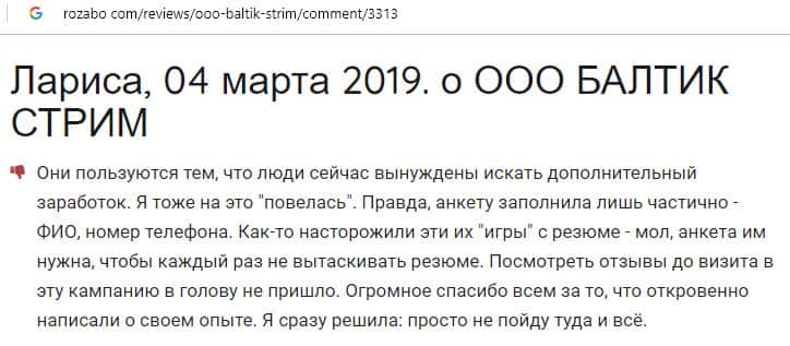 В данном отзыве человек описывает как на самом деле контора Baltik Stream обворовывает своих клиентов и это связано как раз с сайтами по поиску вакансий. Жульбаны начинают свои сказки с разговоров о том, что они расширяют штат, хотя на самом деле это все обман и главная цель - это завлечь жертву к себе в логово.
