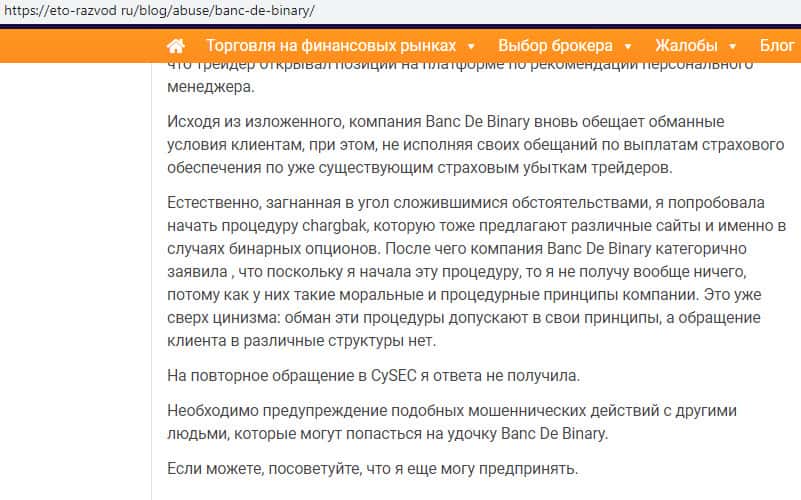 Остатки информации о жуликах Banc De Binary на просторах сети интернет