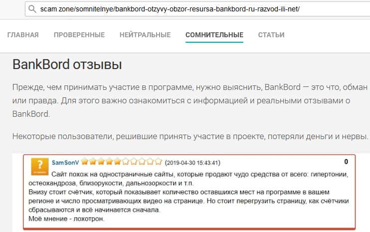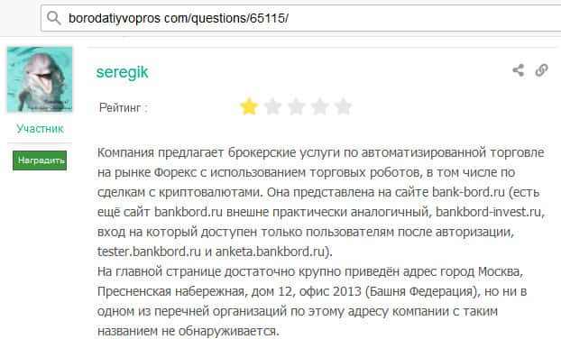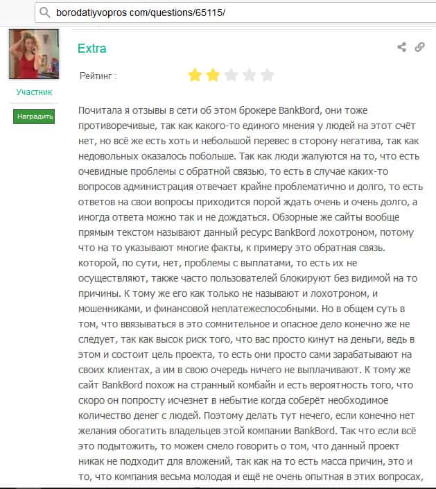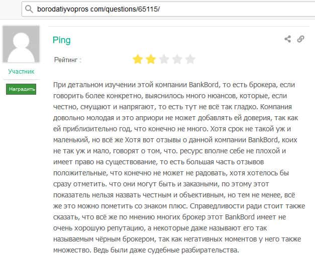 - На авторитетных источниках всплывают реальные отзывы о деятельности BankBord
