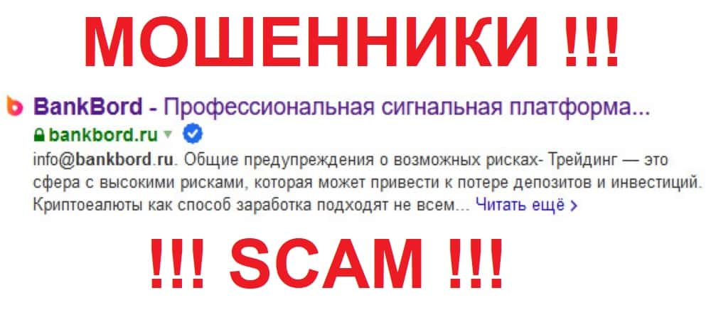 BankBord - мошенническая контора, которая предлагает своим клиентам сигнальную платформу для трейдинга. На самом деле это просто очередная кухня, через которую с вас выманят деньги и потом исчезнут. Короче, очередной развод и лохотрон. Вестись на него не стоит, потому что в итоге вы просто потеряете свои деньги.