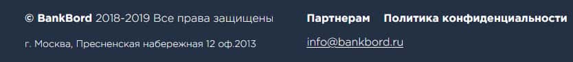 Банк Борд гордо указывают на сайте адрес своего московского офиса, но на самом деле в перечне организаций такая не числится. Тобишь жулики просто дают выдуманный адрес, чтобы замылить в глаза. Это напоминает то, как компании-однодневки регистрируются и арендуют офис в Москва-сити, чтобы пустить пыль в глаза. Тут тоже самое.