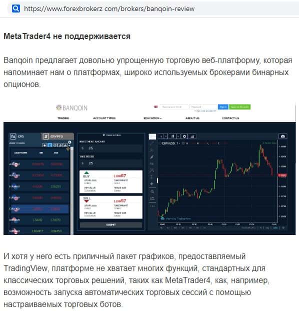 - На веб-ресурсе forexbrokerz com негативно отзываются об использовании брокером Banqoin торговых платформ
