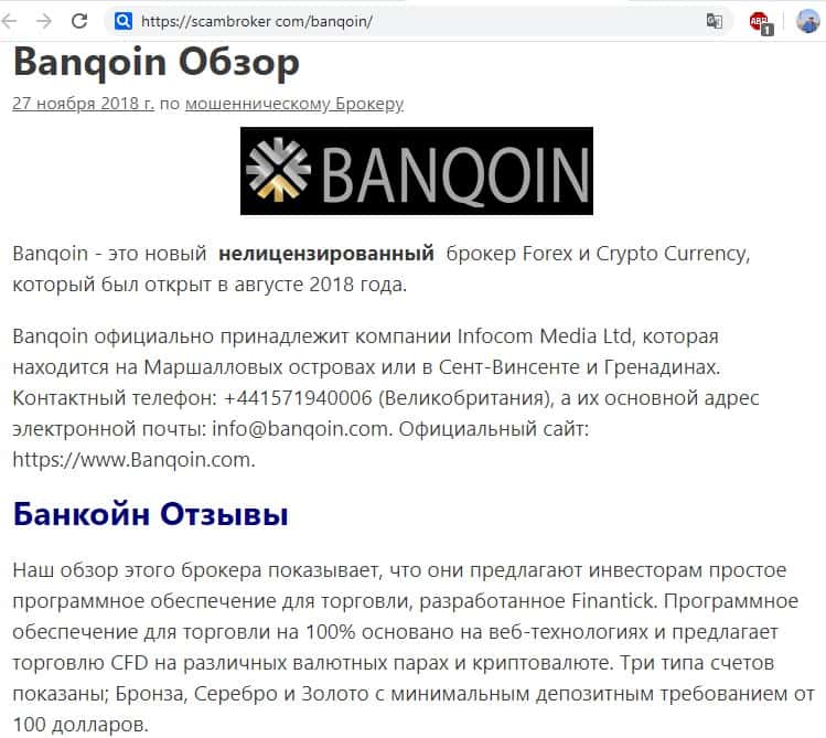 - Banqoin является небезопасным брокером, по мнению аналитиков сайта scamwatcher org