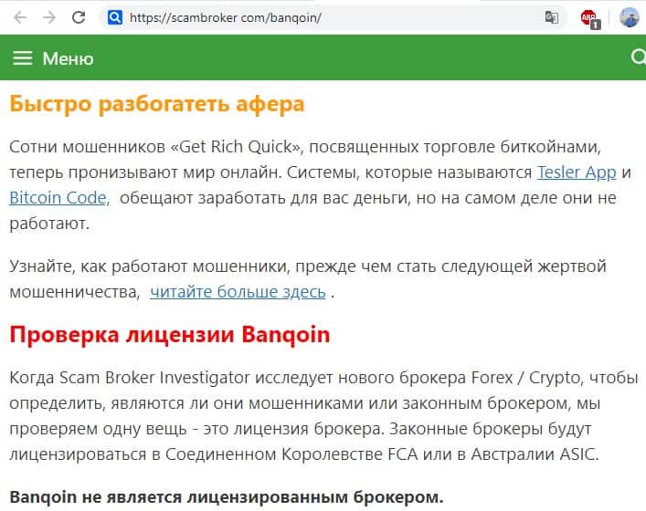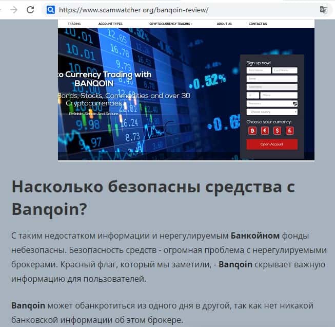 Banqoin является небезопасным брокером, по мнению аналитиков сайта scamwatcher org