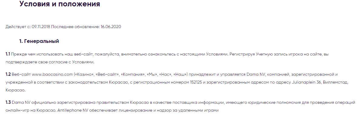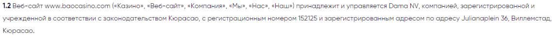 Бао Казино - мошенническая кухня, поэтому ей надо, как можно меньше давать о себе данных своим пользователям и клиентам, чтобы она не понесла уголовной ответственности.
