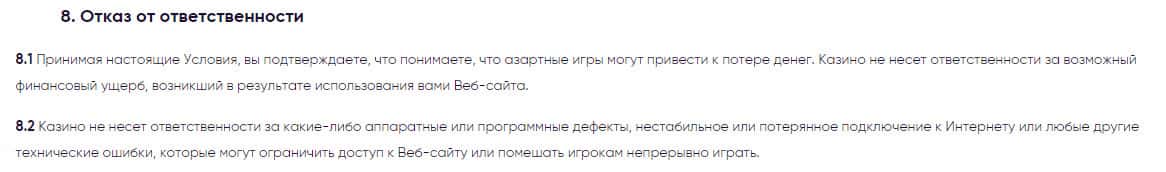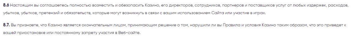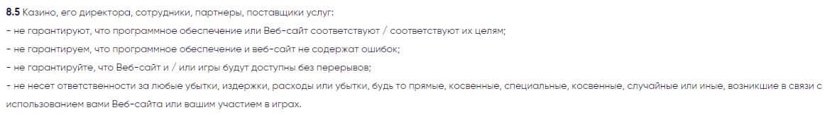 С самого начала в условиях работы нас предупреждают, что казино, якобы зарегистрировано в офшорной зоне, а значит, что ответственности оно никакой не несёт.