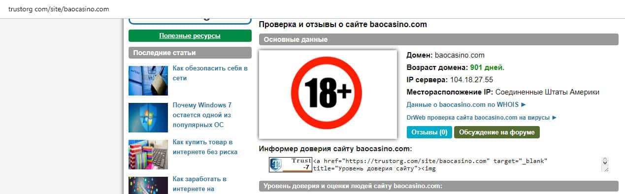 - Домену BaoCasino всего лишь 900 суток говорят на trustorg com