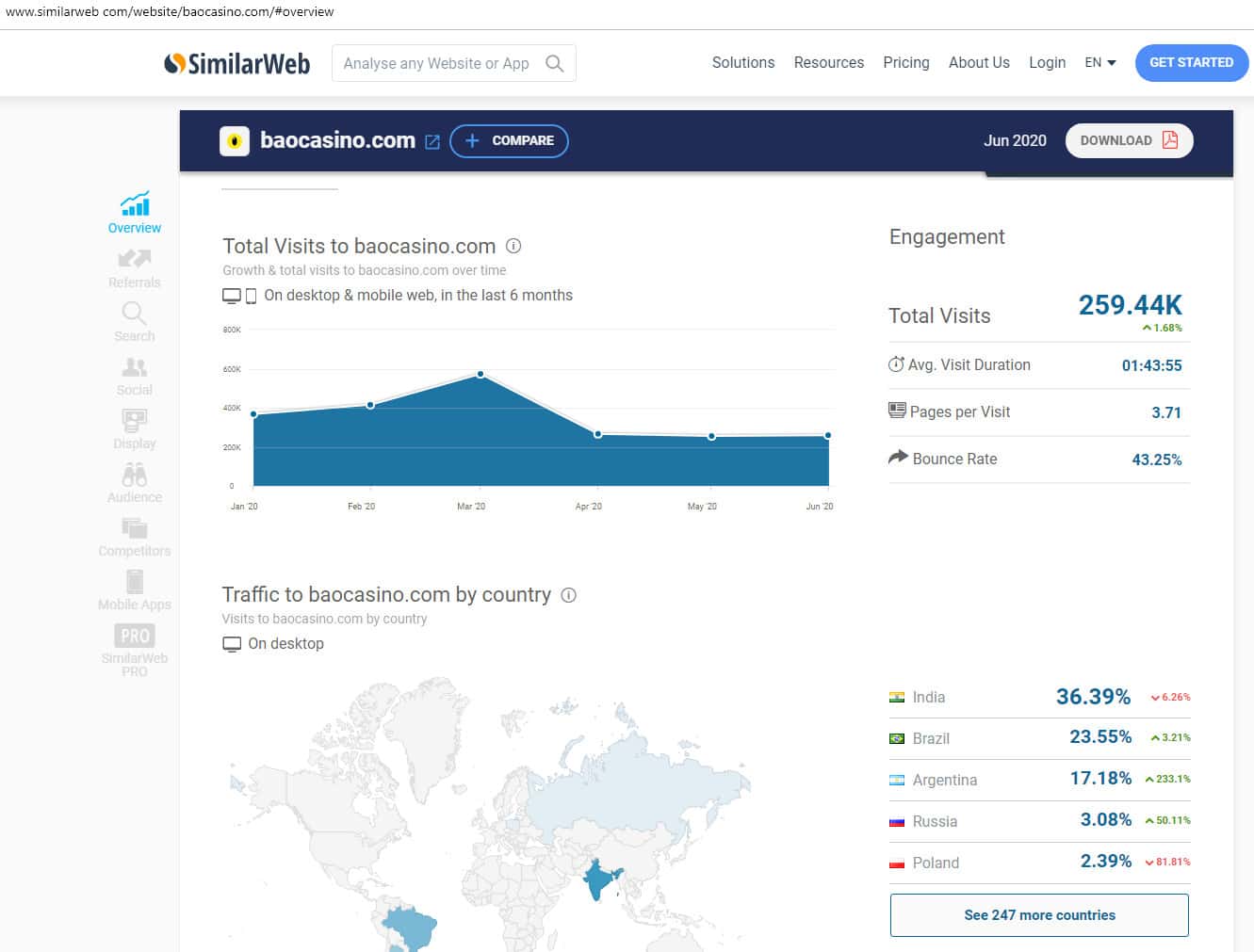 - Статистика о трафике сайта казино Бао Казино на сайте similarweb com