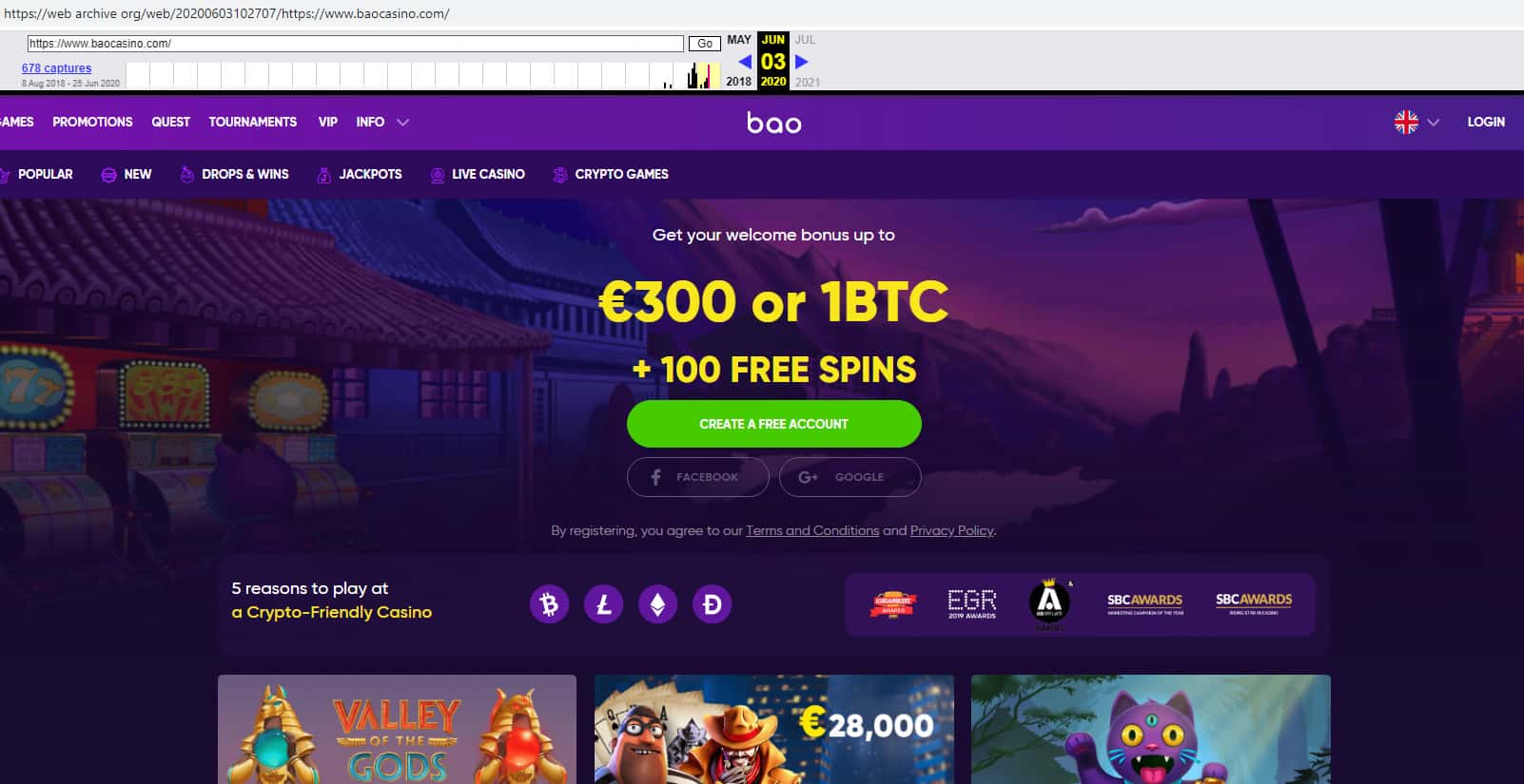 В архиве веб-ресурсов была найдена страница мошеннической кухни Бао Казино, которая позволяет узнать об данном интернет-ресурсе даже в случае, если кухня соскамится.