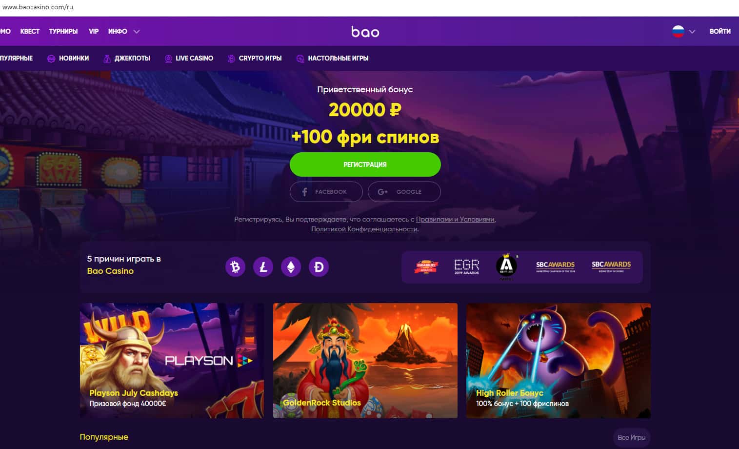 - Главная страница мошеннического и незаконного казино Бао Казино
