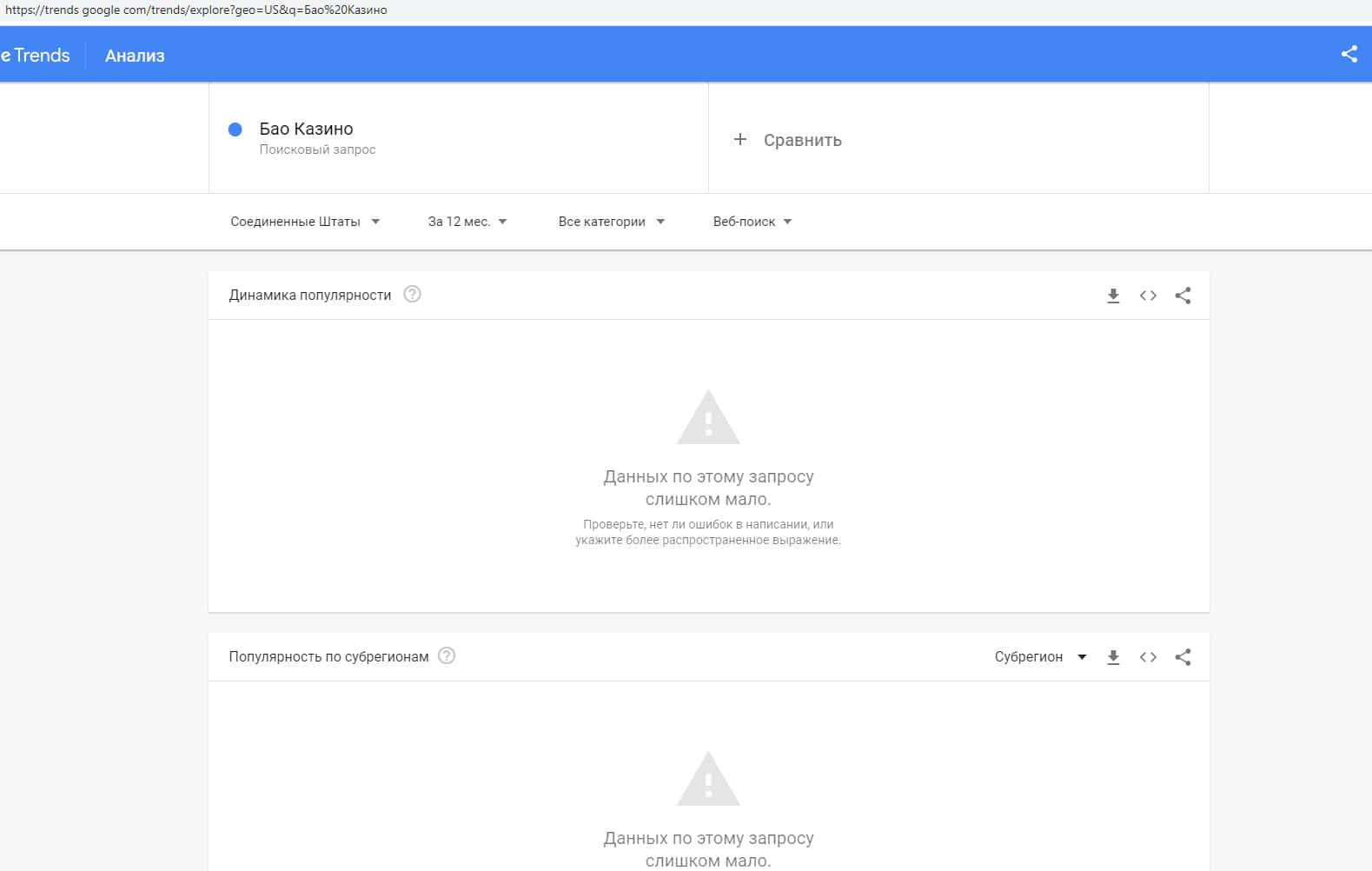 Запросы "Бао Казино" вообще не вносятся в статистику из-за крайне малого количества, то есть основная аудитория не является жителями СНГ.