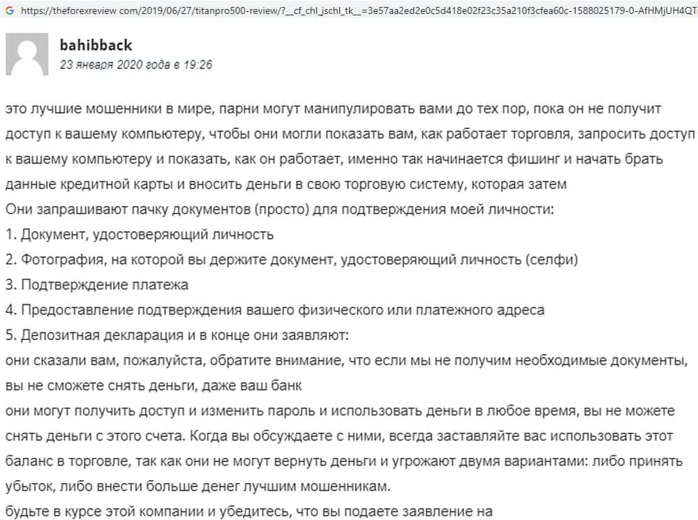 На ресурсе theforexreview com трейдеры требуют, чтобы скам-контора Бар Аудитинг и ее ручной псевдо-брокер были уничтожены. Все дело в том, что аферисты якобы предлагают помощь в торговле и для этого устанавливают программы удаленного доступа, а потом крадут финансовые данные, обчищают кредитные карты жертв и вешают на них долги.