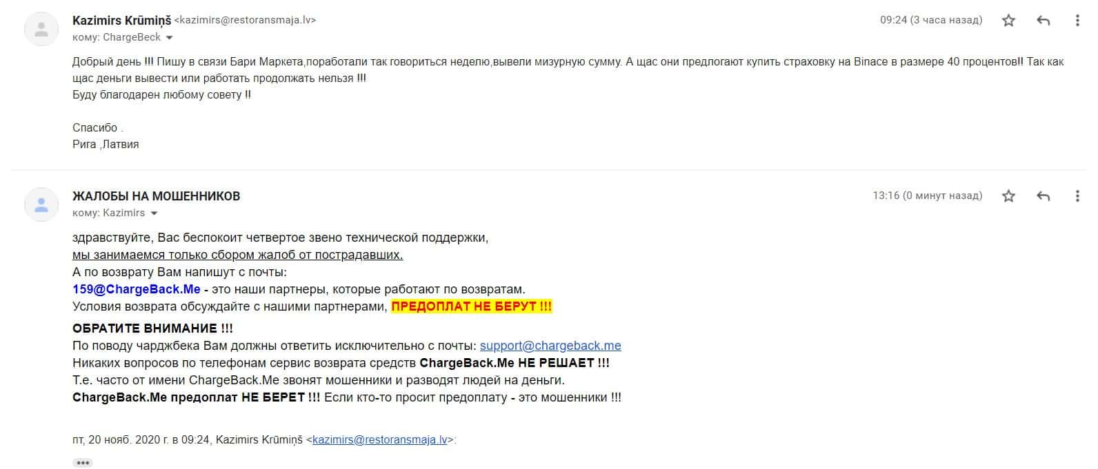 В этом разделе предлагаем ознакомится с информацией от человека, которого пытаются развести жулики BARI Markets, они хотят кинуть его на криптовалютной площадке Бинанс.