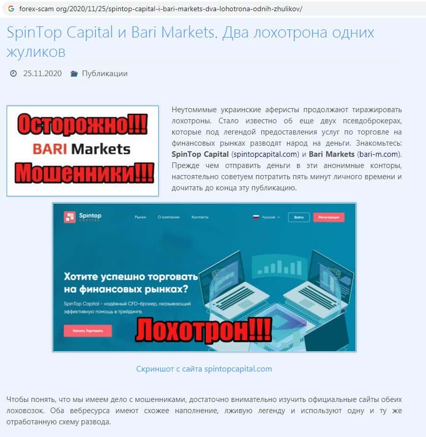 Обзоры скам-организации BARI Markets на других интернет-порталах