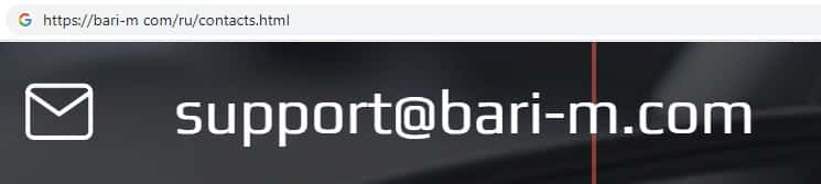 Обманщики БАРИ Маркетс на своем официальном интернет-ресурсе указывают адрес электронной почты, а именно:
