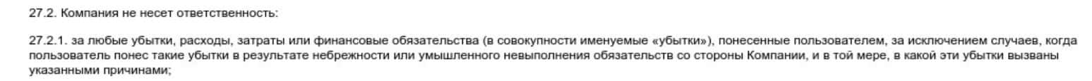 Согласно тому, что аферисты пишут в соглашении, компания БАРИ Маркетс не несет никакой ответственности за не полученную прибыль клиентом, а так же за возможные убытки.