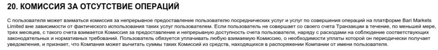 Пользовательское соглашение на сайте скам-брокера БАРИ Маркетс
