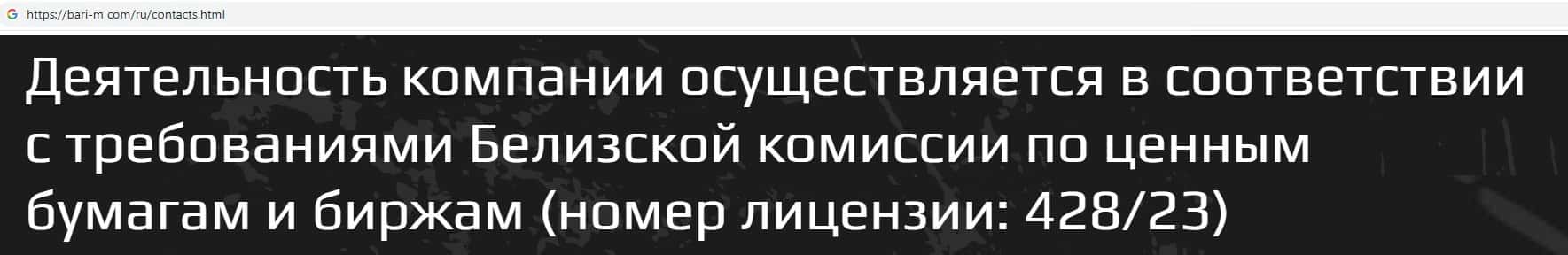 Местом регистрации BARI Markets является оффшорное государство Белиз, где зарегистрировано огромное количество аналогичных онлайн-лохотронов.