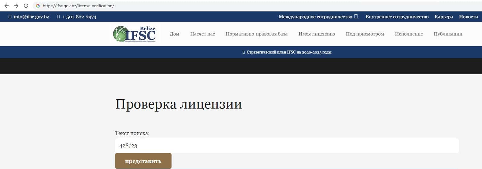 На официальном сайте финансового регулятора Белиза ifsc gov bz нет никакой информации о регистрационном номере предоставленном на сайте скам-брокера БАРИ Маркетс.