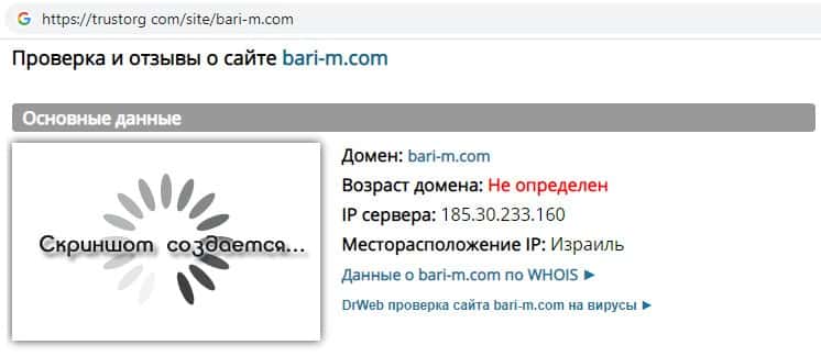 Проверка интернет-портала шулеров БАРИ Маркетс на trustorg com показала, что возраст домена определить невозможно, мы имеем дело с очередной мошеннической организацией.