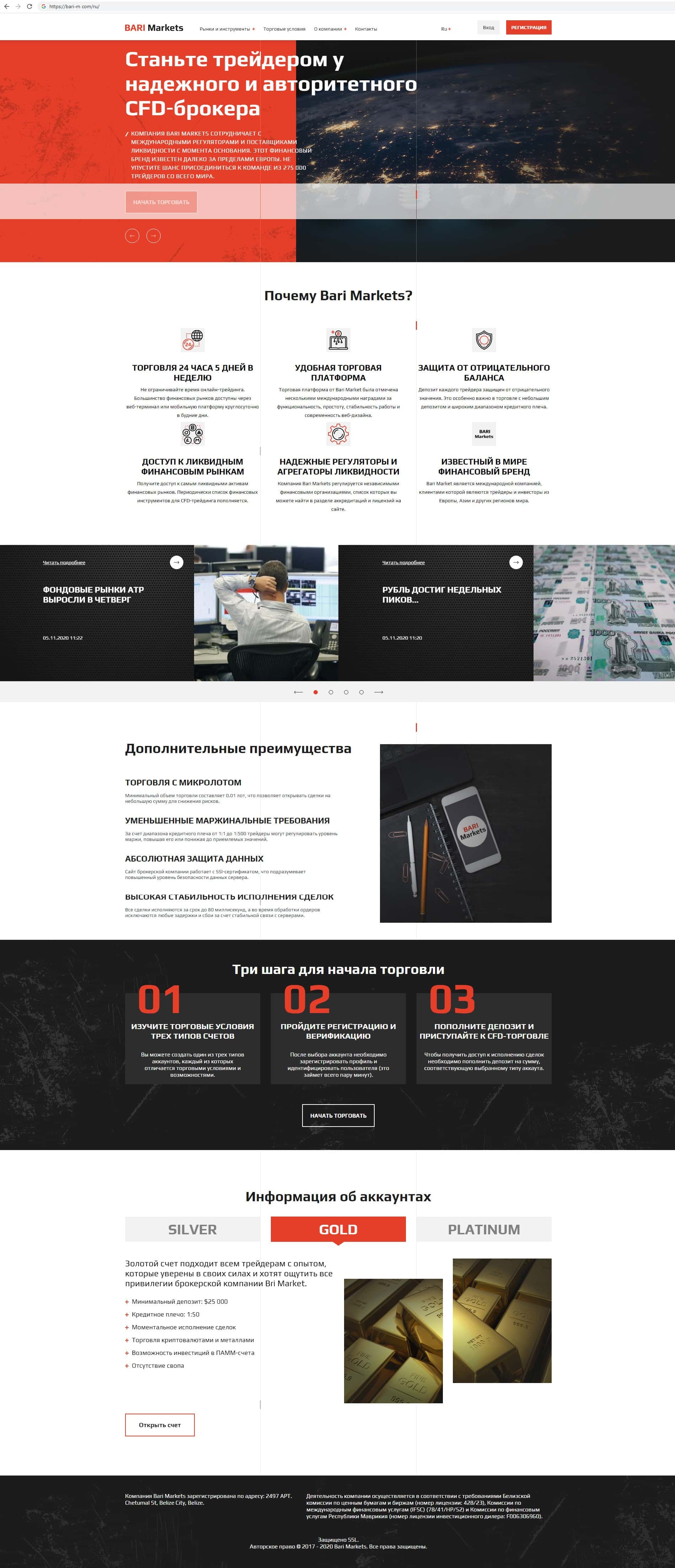 В данном разделе предлагаем увидеть скрин главной страницы веб-сервиса мошеннической организации БАРИ Маркетс, помните о том, что такие проекты очень быстро скамятся.