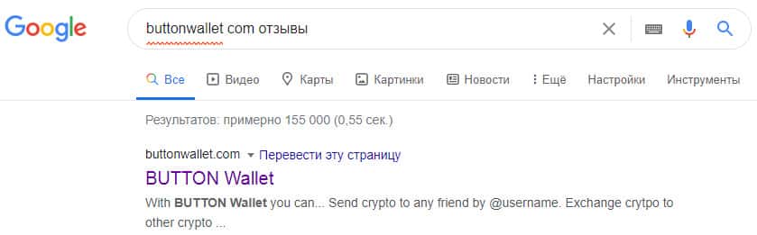 Ввиду крайне низкого возраста и сомнительной деятельности шулеров ButtonWallet в сети интернет толком нету никакой информации о данной конторе, так как аферисты Баттон Валет даже не позаботились об элементарной рекламе. На изображении, расположенном ниже, вы можете наглядно увидеть результаты поиска проходимцев ButtonWallet.