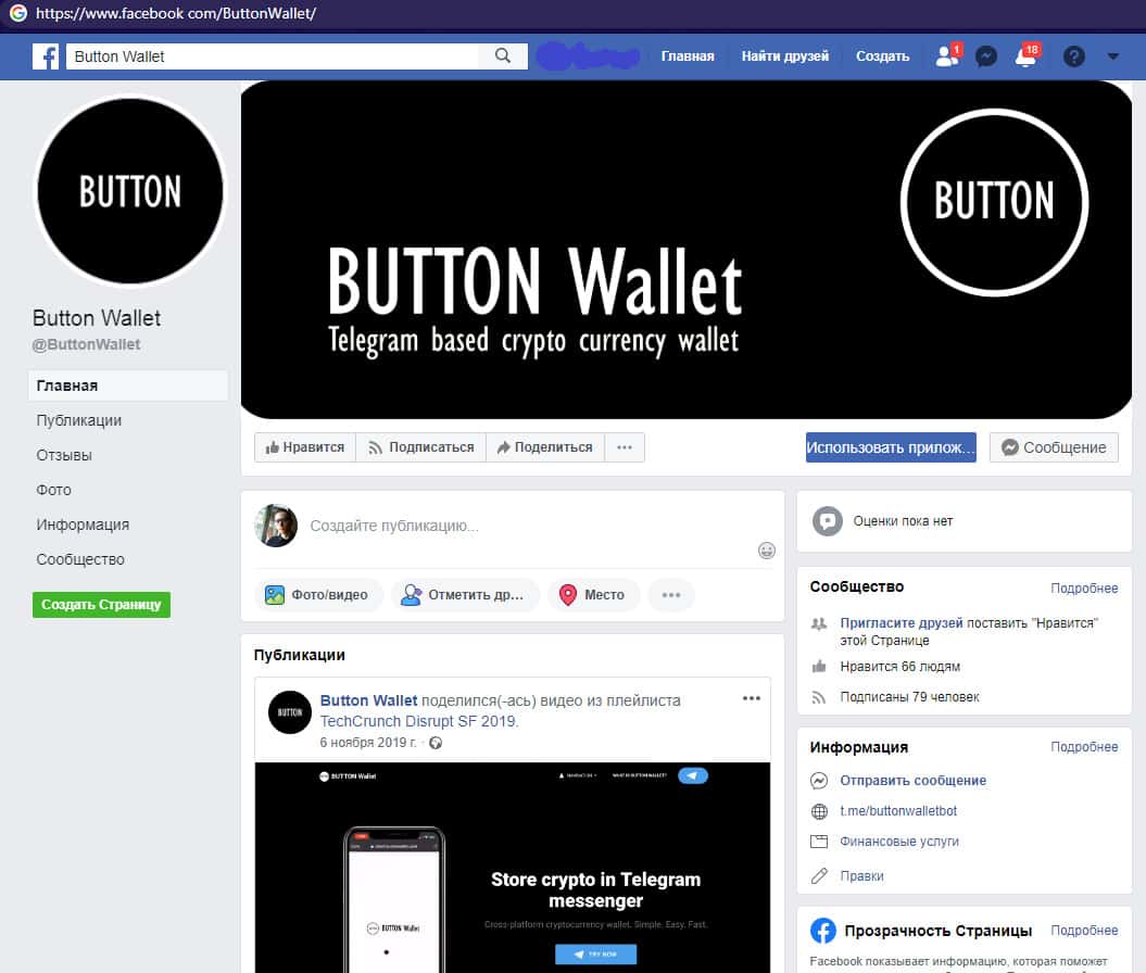 Страницы лохотрона ButtonWallet в социальных сетях